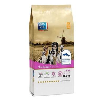 CaroCroc Skin Support is een volledig diervoeder speciaal ontwikkeld voor honden met een gevoelige huid of een verminderde huid- en vachtconditie. Deze hoogwaardige voeding bevat verse zalm en zalmolie, rijk aan essentiële omega-3 en -6 vetzuren. Deze vetzuren dragen bij aan een gezonde huid en een glanzende vacht, terwijl ze ontstekingsremmend werken en het immuunsysteem ondersteunen. Skin Support is vrij van tarwegluten, waardoor het ook geschikt is voor honden met een glutenintolerantie.