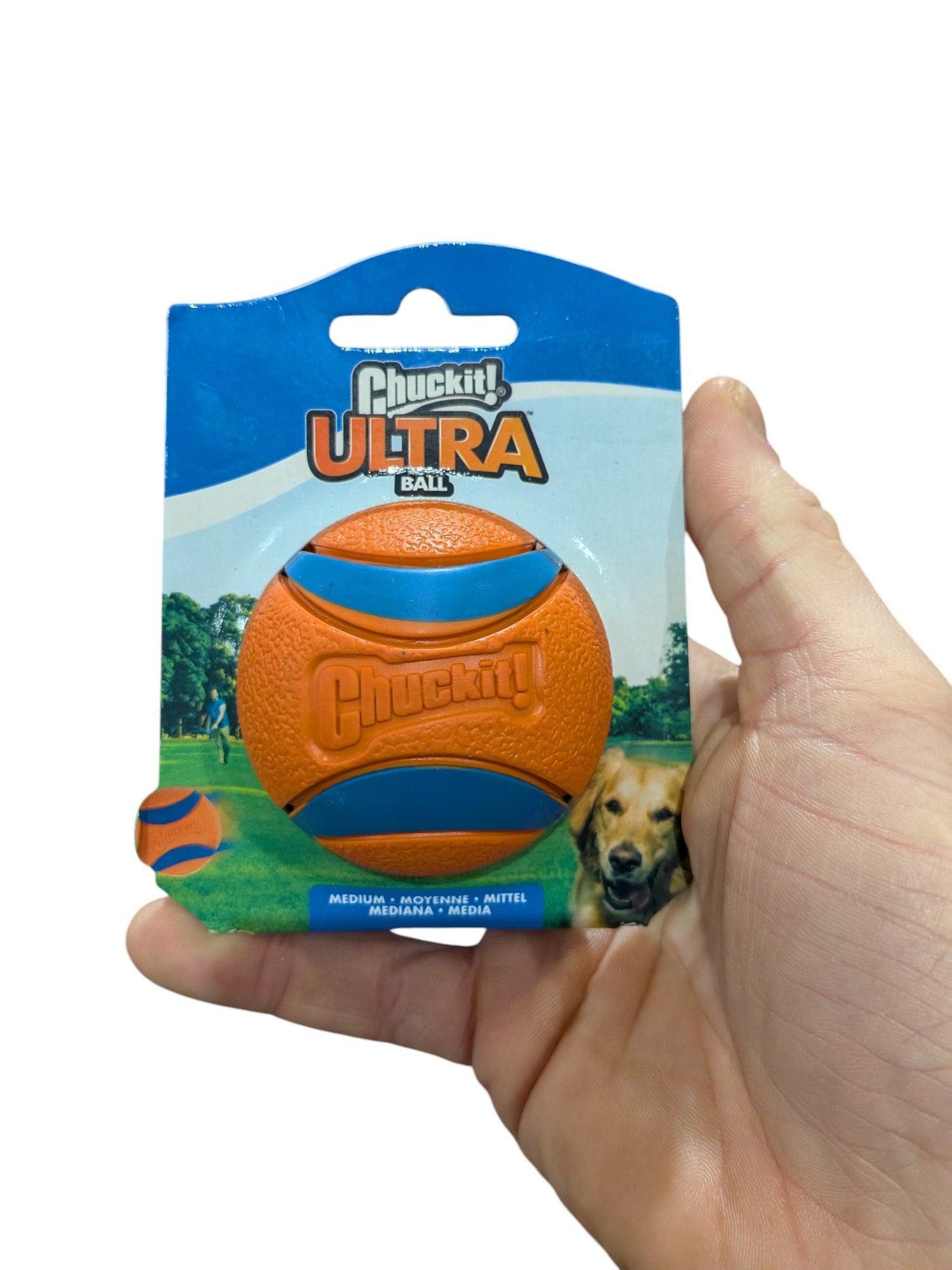 De Chuckit! Ultra Ball is het perfecte hondenspeelgoed voor actieve honden die graag apporteren. Deze bal is gemaakt van stevig, natuurlijk rubber en ontworpen om lang mee te gaan. Dankzij de hoge stuiterkracht en het lichte gewicht blijft de bal goed drijven op water, waardoor hij geschikt is voor zowel land als waterplezier. De opvallende kleur maakt het eenvoudig om de bal terug te vinden, zelfs in gras of water.