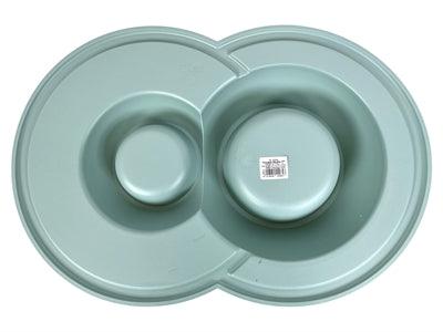 De Happy Pet Mad About Pets Voerbak/Drinkbak Volcano Dubbel Salie Groen 230/600 ml is een dubbele voer- en drinkbak met flexibele mat. De bakken zijn in de mat geïntegreerd, waardoor het geheel eruit ziet als een soort dubbele vulkaan. De binnen-bakjes van plastic zijn uit de mat te verwijderen, om het geheel goed schoon en droog te kunnen maken. De Volcano dubbele voer- en drinkbak van Happy Pet heeft een mooi ontwerp en is uitgevoerd in de kleur salie groen.