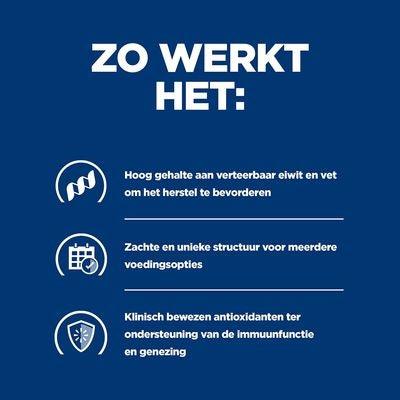 • Speciaal voor herstel: Helpt honden en katten sneller te herstellen van operaties of ziekten.