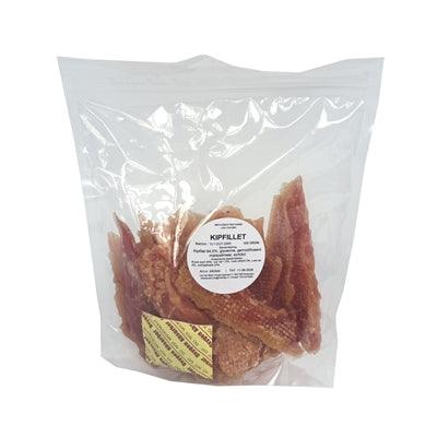 Samenstelling: Kipfilet 94,5%, glycerine, gemodificeerd maïszetmeel, sorbitol