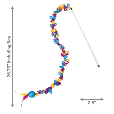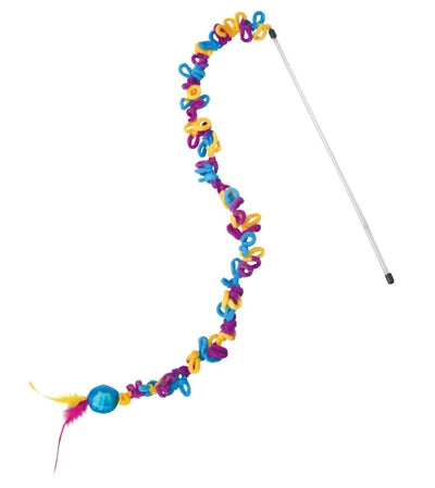 De KONG Teaser Loopz van 46 cm is interactief kattenspeelgoed van KONG, een kattenhengel met lussen van wol in vrolijke kleuren en ritselbal met kattenkruid. Op zoek naar de allerleukste kattenhengel voor jouw kat? Zoek dan niet langer! Ga voor deze vrolijke Teaser Loopz van KONG. Deze spectaculaire kattenhengel is perfect om mee te spelen, want door de leuke stringen van extra dikke, multikleur wol zal jouw kat graag achter deze hengel aanjagen. De glimmende ritselbal met staartje van veren maakt het nog aantrekkelijk om samen met deze hengel te spelen, vooral omdat deze ook nog eens is gevuld met Noord Amerikaans kattenkruid. Ideaal om samen mee te spelen en aan de onderlinge band tussen kat en baas te werken.