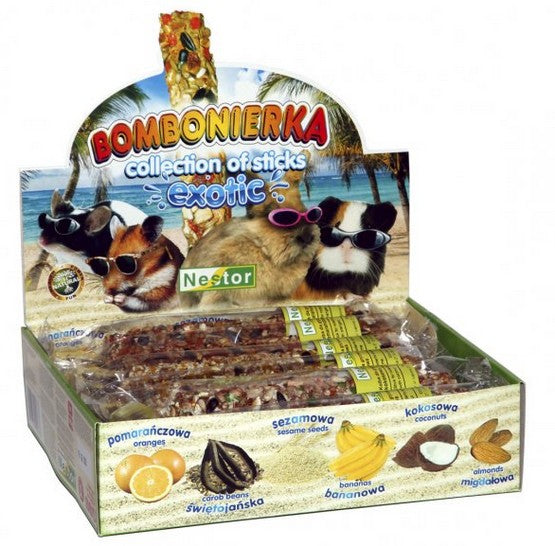 Bombonierka dla gryzoni i królików EXOTIC to zestaw 12 kolb w 6 smakach: