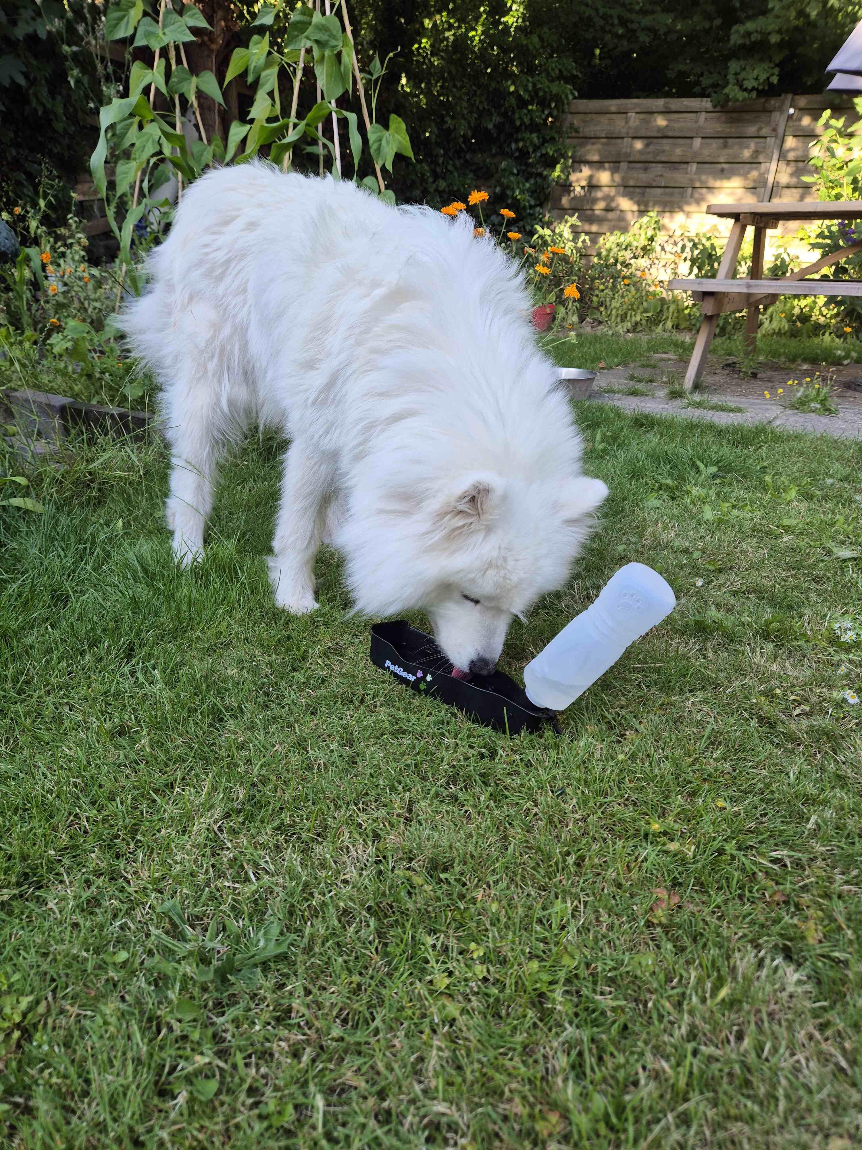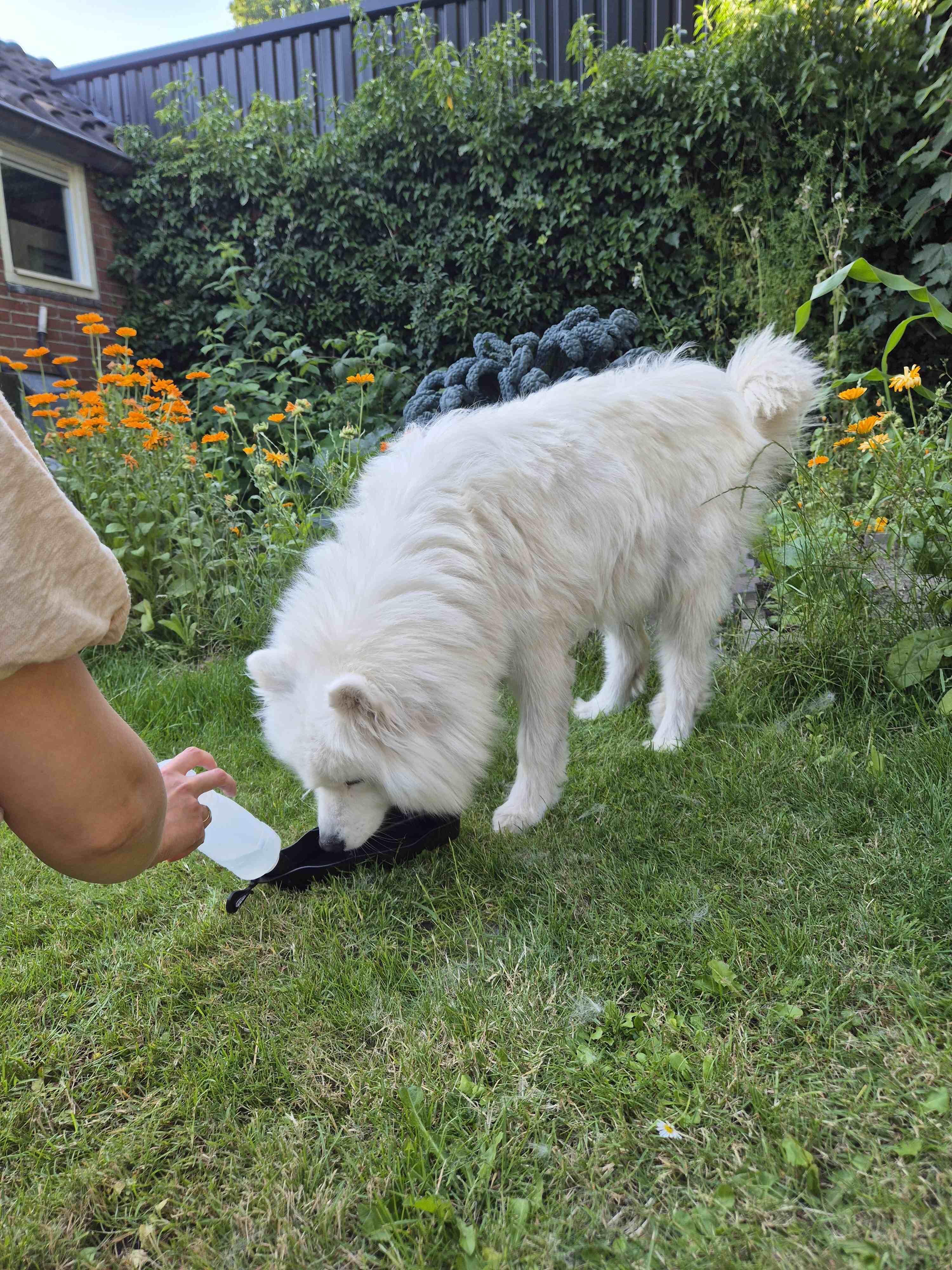 - Als de hond niet alles opdrinkt, is het wat lastiger om het overgebleven water terug in de fles te doen.