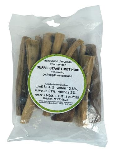 De Petsnack Buffelstaart Met Huid 250 gr zijn lekkere kauwsnacks voor de hond op geheel natuurlijke basis. De snack is gemaakt van gedroogde buffelstaart en 100% natuurlijk. Ideaal om op te kauwen en daardoor perfect tegen verveling en ter ondersteuning van het schoonhouden van het gebit.