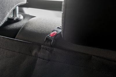 Uniek aan deze deken zijn de zijstukken die aan de deuren bevestigd worden. Deze beschermen niet alleen je deurpanelen tegen haren, modder en krassen, maar voorkomen ook dat je hond onverwacht uit de auto springt wanneer een deur opent. Dankzij de gordelopeningen bevestig je eenvoudig een autogordel of korthouder aan het tuigje van je hond. Een extra deel van de deken is opklapbaar, zodat er ook ruimte blijft voor een passagier op de achterbank.