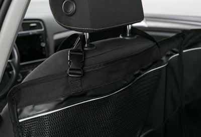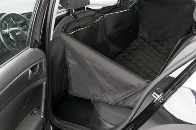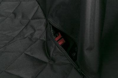 Met handige lussen bevestig je de deken eenvoudig aan de hoofdsteunen van zowel de voor- als achterstoelen. De hoge zijkanten beschermen de deuren tegen krassen, vuil en modderige poten. Deze zijkanten zijn opengeritst naar beneden te klappen, wat het in- en uitstappen van je hond vergemakkelijkt. Dankzij de uitsparingen voor autogordels kun je je hond veilig vastzetten met een tuigje. En wil je nog iemand naast je hond op de achterbank laten zitten? Geen probleem: de deken is in tweeën te delen.