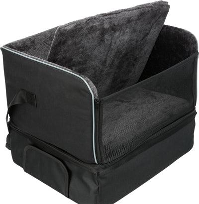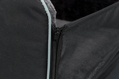De stoel wordt eenvoudig bevestigd aan de bijrijdersstoel met verstelbare banden. Dankzij een slimme spleet in het ontwerp kun je een veiligheidstuigje doorvoeren en zo je hond vastzetten met de autogordel. Dit voorkomt dat je hond tijdens het rijden uit de stoel springt of bij plotseling remmen naar voren wordt geslingerd. De binnenzijde van de stoel is bekleed met zachte stof, wat zorgt voor extra comfort, terwijl de buitenzijde van stevig nylon is gemaakt – duurzaam én gemakkelijk schoon te maken.