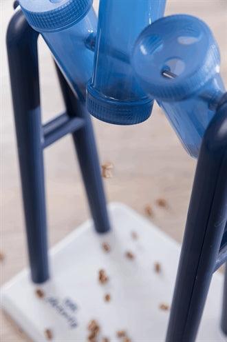 Elk van de draaibare elementen heeft twee deksels met verschillende maten gaten, zodat je de moeilijkheidsgraad kunt aanpassen naarmate je hond beter wordt in het spel. Dit zorgt ervoor dat je hond telkens weer uitgedaagd wordt, wat niet alleen verveling voorkomt, maar ook schrokken vermindert. Dankzij de slipvaste rubberen voetjes blijft het spel stevig op zijn plaats, zelfs bij enthousiast spelen. Bovendien zijn de draaibare onderdelen vaatwasserbestendig, wat het schoonmaken na gebruik eenvoudig maakt.