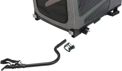 De dissel is slim op te bergen aan de zijkant van de kar, waardoor je de fietskar eenvoudig ombouwt tot een hondenbuggy met behulp van de optionele buggy-uitbreidingsset. Ideaal voor wandelingen in het park of tijdens een vakantie. Het handvat is bovendien in hoogte verstelbaar, zodat je de kar op jouw ideale duwhoogte kunt instellen.