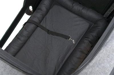 Binnenin de cabine zit een stevige veiligheidsriem met karabijnhaak waarmee je jouw hond aan zijn tuigje vastzet. Zo voorkom je dat je hond onverwachts opspringt of uit de kar probeert te springen. De combinatie van de veilige bevestiging aan de fiets en de interne vastzetmogelijkheid maakt deze fietskar een veilige keuze voor vrijwel elke situatie.