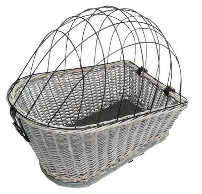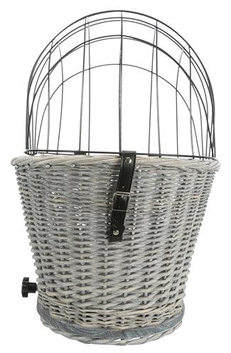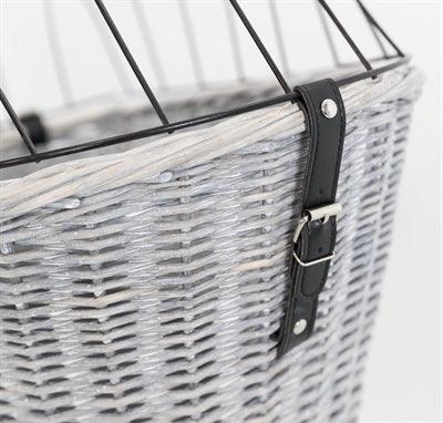 Stijlvolle fietsmand van lichtgrijze gevlochten wilgentenen