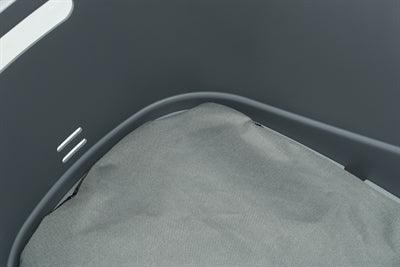 Binnenin ligt een slipvaste ligmat die wasbaar is op 30 graden, zodat je altijd schoon en fris op pad kunt. Deze mat biedt extra grip en comfort voor je hond tijdens het fietsen.