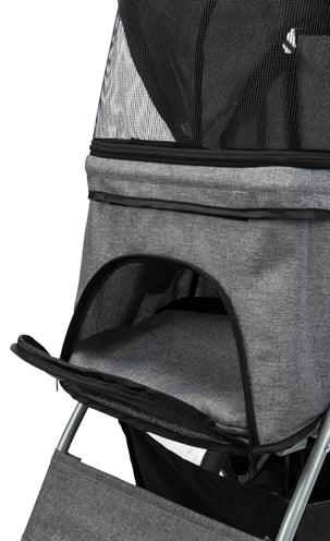 De buggy is ontworpen voor maximaal gebruiksgemak en kan eenvoudig met één hand worden ingeklapt. Dankzij de grote achterklep kan je hond gemakkelijk in- en uitstappen zonder te hoeven springen. Gebruik de ritssluitingen om de buggy deels of volledig af te sluiten, afhankelijk van het weer en de voorkeur van je hond.