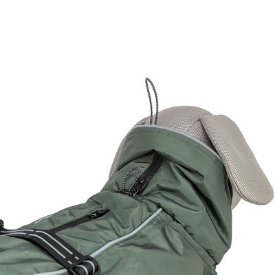 De elastische dubbele kraag, verstelbare trekkoorden in nek en rug, en ruime pasvorm zorgen voor extra comfort en bewegingsvrijheid. Dankzij de waterdichte ritssluiting op het ruggedeelte is de jas te combineren met een tuig. Reflecterende elementen en drukknopen bij de achterhand verhogen de veiligheid en bescherming tijdens koude wandelingen. Afgewerkt met een buikriem met gesp en verstelbare beenlussen, én getest door een onafhankelijk gespecialiseerd instituut voor dierenwelzijn en dierenbescherming, is deze jas een betrouwbare keuze voor de winter.