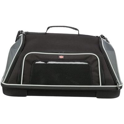 Deze tas combineert lichtgewicht gemak met stevigheid, waardoor je hond zich beschermd voelt zonder dat jij met een zware of onhandige tas hoeft te sjouwen. Dankzij de vormvaste zijkanten en het zachte interieur biedt deze tas optimale rust tijdens het reizen. Doordat hij aan drie zijden te openen is, vermijd je onnodig tillen of stressvolle momenten bij het in- en uitstappen. En met de verstelbare schouderriem wissel je eenvoudig van draagstijl – handig als je tijdens je reis van vervoer of terminal moet wisselen.