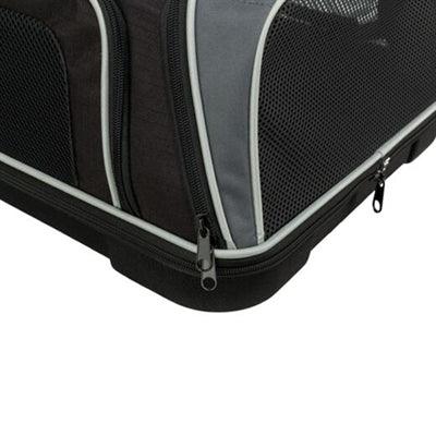 Dankzij het elegante ontwerp in zwart en grijs past deze hondentas bovendien bij vrijwel iedere reisuitrusting, en valt hij niet te veel op wanneer je door luchthavens of stations reist. De tas is gemaakt van duurzaam EVA met polyester en is zowel stevig als vormvast, zodat je hond zich beschermd voelt, zelfs in drukke omgevingen.