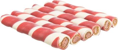 De Trixie Kauwrol Gevuld Met Eend 10 cm 100 st is een smakelijke, aanvullende hondensnack uit runderhuid omwikkeld en gevuld met eend. Een ware smaaksensatie die ook nog eens gezond is voor het gebit! Kauwen op runderhuid helpt de gebitsverzorging ondersteunen omdat runderhuid bij het kauwen langs de tanden wrijft en ze zo helpt te ontdoen van vuil en bacteriën. Niet alle honden vinden runderhuid echter even lekker. Dat probleem is nu opgelost met deze gevulde kauwrollen van Trixie! Deze rollen zijn omwikkeld en gevuld met heerlijke eend, rijk van smaak en ook nog eens gezond door het hoge percentage eiwit. Glutenvrij en zonder toegevoegde suikers!
