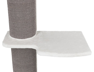 De Trixie Krabpaal Acadia Voor Aan De Muur Grijs 160 cm is een moderne krabpaal met sisal krabvlakken en drie ligvlakken die aan de muur bevestigd kan worden. Ideaal als je meerdere katten hebt of jouw kat graag meerdere ligplekken biedt! De krabpaal is uitgevoerd met een paal van grijs sisal om aan te krabben en drie witte ligplateaus. Het bovenste plateau is voorzien van een afneembare relaxmand, die met de hand gewassen kan worden. Alle ligvlakken zijn bekleed met pluche voor meer comfort. Voor meer stevigheid kan deze krabpaal aan de muur bevestigd worden: zo blijft de krapbaal stevig op zijn plek als jouw katten eraan krabben of naar de bovenste verdieping klimmen!