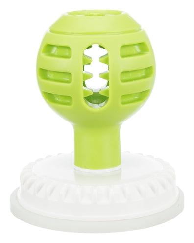 De Trixie Lick 'n' Snack Bal is een interactief lik- en snack speeltje, speciaal ontworpen om jouw hond op een rustgevende en kalmerende manier bezig te houden. Likken is een natuurlijke behoefte die honden helpt te ontspannen, en met deze snackbal wordt dat gecombineerd met een beloningsmoment. De bal is bevestigd op een stevige standaard van TPR en kunststof, die voorzien is van een zuignap, zodat het speeltje goed op zijn plek blijft op gladde oppervlakken zoals tegels of laminaat.