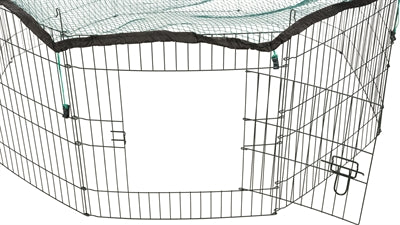 De ren bestaat uit acht panelen en is voorzien van een deur. De maaswijdte is 1X1 cm.