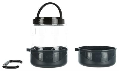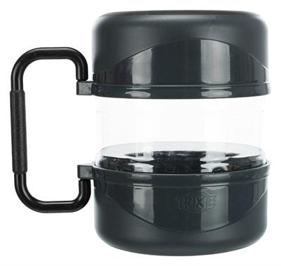De Trixie Reisset met Voerbak en Drinkbak is een slimme, compacte oplossing voor onderweg. Deze handige 3-delige set bestaat uit een transparant reservoir van 2 liter voor hondenvoer en twee stevige bakken van elk 750 ml die dienen als voer- of drinkbak. De bakken klikken aan de boven- en onderzijde van het reservoir vast, met een handvat in het midden voor gemakkelijk dragen. Ideaal voor vakanties, dagtrips of kamperen met je hond.