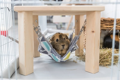 De Trixie Schuilplaats Met Hangmat Sunny Assorti / Grijs van 28 x 28 x 24 cm is een schuilhuisje voor knaagdieren als cavia's met daarin een hangmat. Jouw cavia kan dit huisje zowel als schuilplek of uitkijkplaats gebruiken! Het huisje is gemaakt van onbehandeld hout en eenvoudig te monteren. In het huisje is een hangmat geplaatst, die je eenvoudig in hoogte kunt verstellen voor de verschillende oogjes. De hangmat is gemaakt van zacht pluche en wasbaar met de hand.