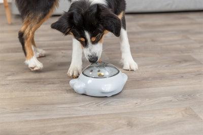 De Trixie Snack Popper in grijs en limoen is een interactief hondenspeeltje dat snoepjes uitwerpt als beloning, waardoor jouw hond spelenderwijs wordt gestimuleerd. Door de Snack Popper heen en weer te duwen, activeert je hond het mechanisme dat de beloningssnoepjes uitwerpt. Dit maakt het een geweldige manier om je hond mentaal en fysiek uit te dagen, terwijl hij op een speelse manier beloond wordt.