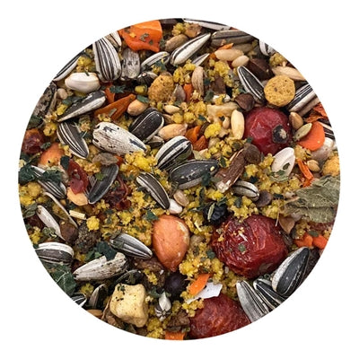 Eivoer is een noodzakelijke aanvulling op de zaden en noten en geeft jouw vogel de extra vitamines en aminozuren die hij nodig heeft. De tijmpoeder en brandnetel hebben een ontstekingsremmend effect en houden ziektekiemen tegen. Zeewier zorgt voor een prachtig verenkleed en heeft een gunstig effect op de darmflora. Vitamines zijn belangrijk voor de weerstand, stofwisseling en voor een extra goede werking van de spieren. De toegevoegde maagkiezel zorgt voor een goede vertering en oestergrit voorziet in de natuurlijk behoefte aan calcium.