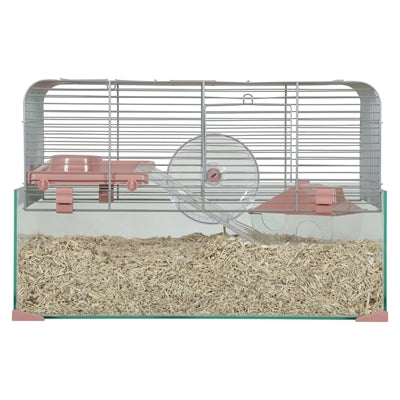 De Zolux Knaagdierkooi Panas Roze 52X35X29 cm is de ideale speel- en leefruimte voor je hamster. Met een glazen onderkant blijft de bodembedekking netjes op zijn plaats en kan je hamster zich heerlijk verstoppen. Deze complete set bevat een voerbakje, hamsterrad, huisje, plateau, trappetje en het benodigde bevestigingsmateriaal. Bovendien kun je deze kooi eenvoudig uitbreiden door hem met een buis (niet inbegrepen) aan andere Panas Color kooien te koppelen. Geef je hamster het perfecte thuis met de Zolux Panas!